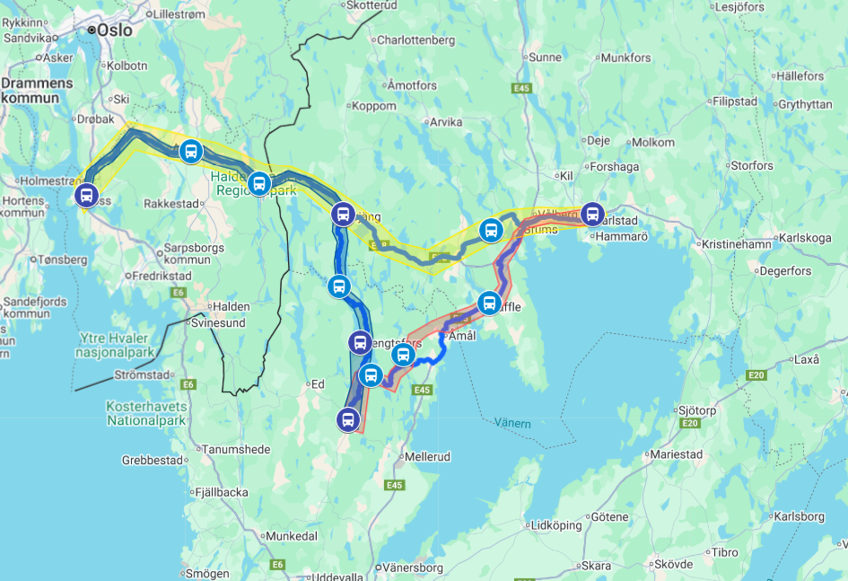 Tisdag: Bäckefors – Karlstad -Moss – Bäckefors (motsols)